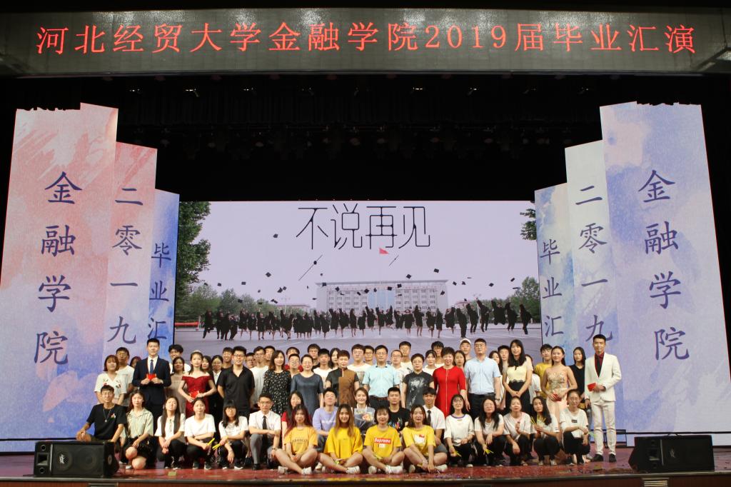 汇演在欢快的舞蹈中拉开帷幕,三个篇章“‘金’生相聚”、 “青春‘再见’”、“未来,我们同在”如画卷般依次展现在大家面前,表达了毕业生们对母校及恩师的感激、对大学生活的不舍以及对自己未来生活的美好向往。节目类型涵盖了舞蹈、独唱、相声、朗诵、魔术、合唱等,学院领导老师呈现的诗朗诵《金生有你》饱含深情的叮咛、嘱托和期望。汇演内容丰富多彩,精彩纷呈,最后在“不说再见”的大合唱中圆满落幕。