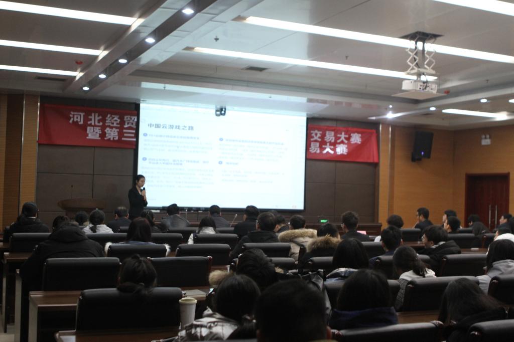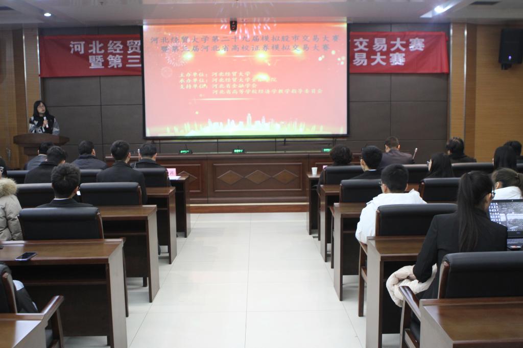 第二十九届模拟股市交易大赛暨第三届河北省高校证券模拟交易大赛团体赛决赛及颁奖仪式在第三会议室顺利举行,来自河北工业大学、石家庄铁道大学、河北地质大学、华北理工大学、韩国三级片