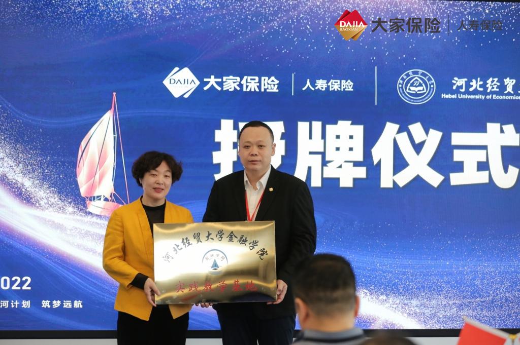 贾喜环书记与大家人寿个险夏学伟总举行授牌仪式。双方将在大学生岗位实训指导、创业教育和职业指导等方面进行全方位合作。