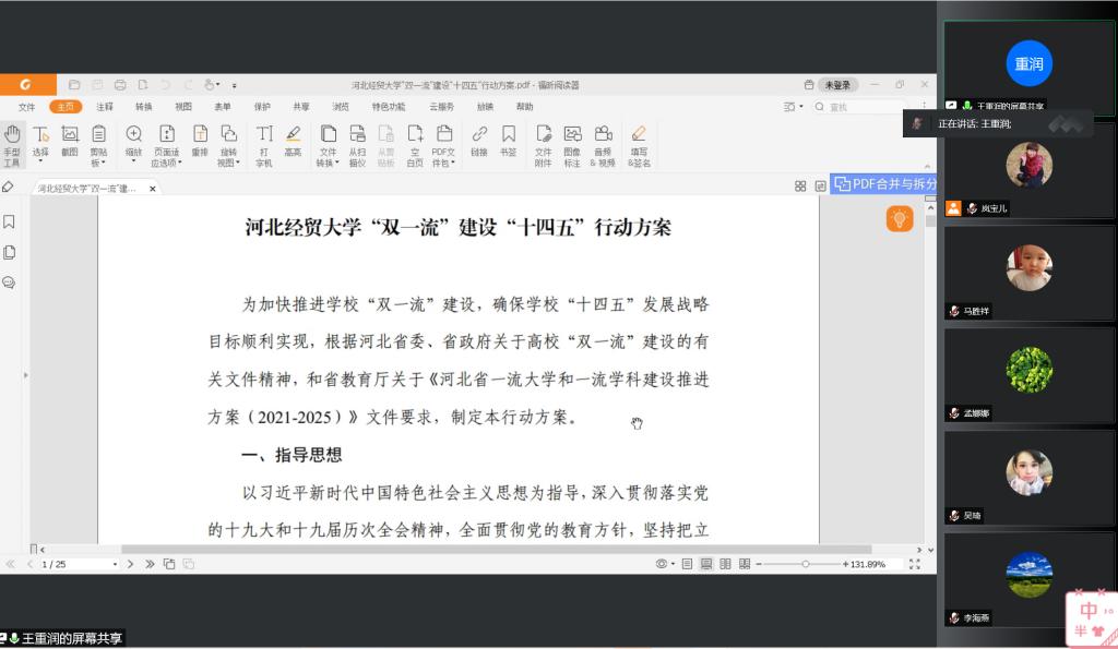 《关于高层次论文通讯作者及国家重大项目子课题的相关规定》,明确了具体的工作要求。接着,王重润分析了近5年来学科发展的现状和特点,指出目前遇到的问题。学科成员老师们各抒己见,一起探讨了学院学科发展下一步努力的方向,如进一步凝练学科方向、搭建更为合理的研究团队、给新进博士更多的科研空间等。