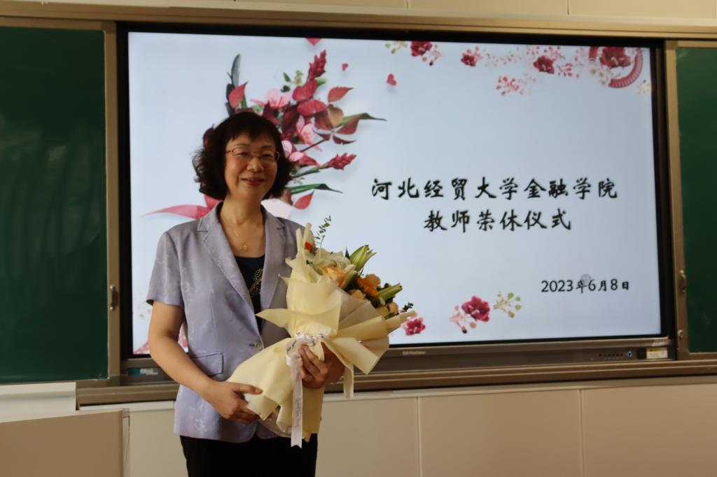 仪式在金融学专业学生的歌声中拉开帷幕,两位退休教职工从业以来勤勤恳恳,爱岗敬业,无私奉献,用心教书,用爱育人,深受师生的敬爱。