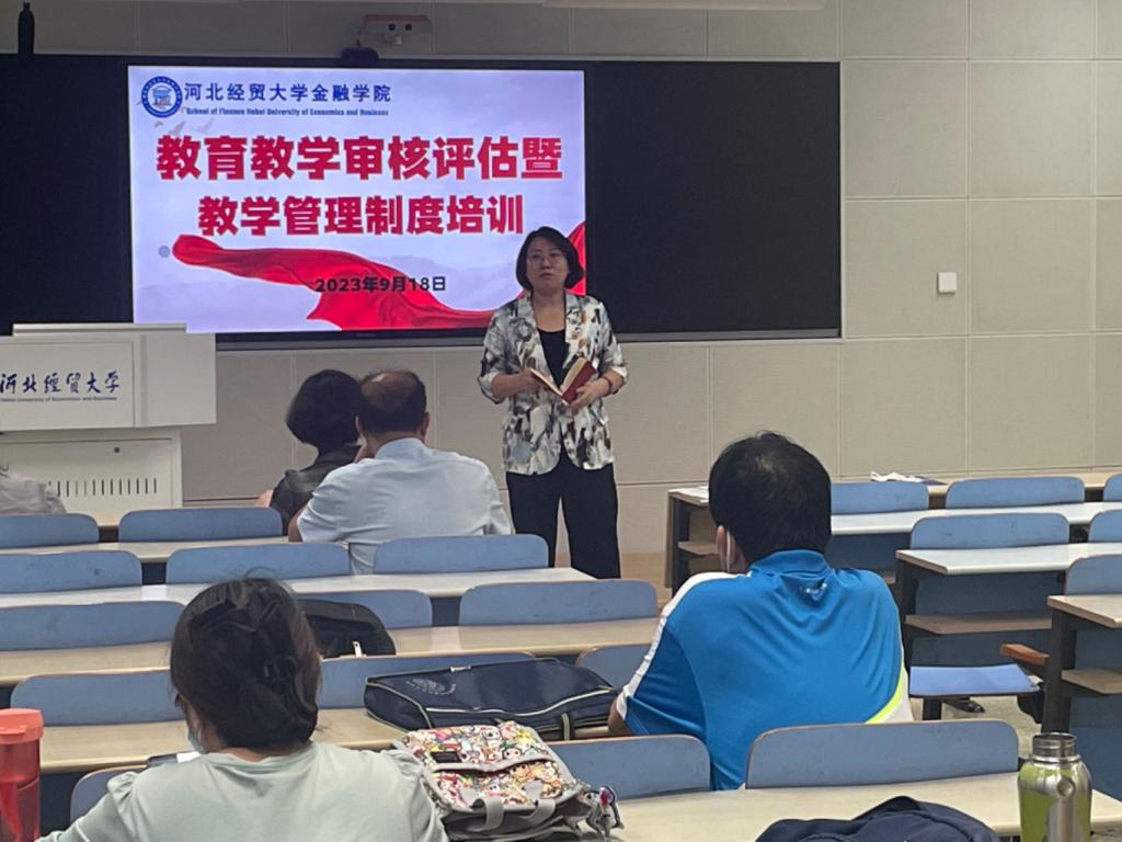 学院副院长窦丽琛做主题培训。她首先强调了本科教育教学审核评估知识学习的重要性,带领大家集体学习了相关知识,尤其是学校新财经人才培养目标、培养特色、培养模式、专业人才培养学分结构等内容,并对课堂教学、课程资源建设等方面提出了要求。然后,她为大家梳理了学校的一系列规章制度,制作了共享学习文档,并带领大家集体学习了《韩国三级片