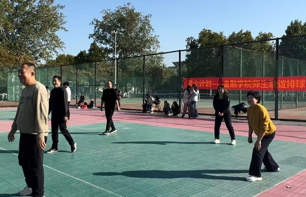 师生联谊排球赛在学校排球场正式拉开帷幕。学院教师与学生代表齐聚赛场,以排球为纽带,在运动中传递热情,共同展现金融学子与教职工的蓬勃风采。