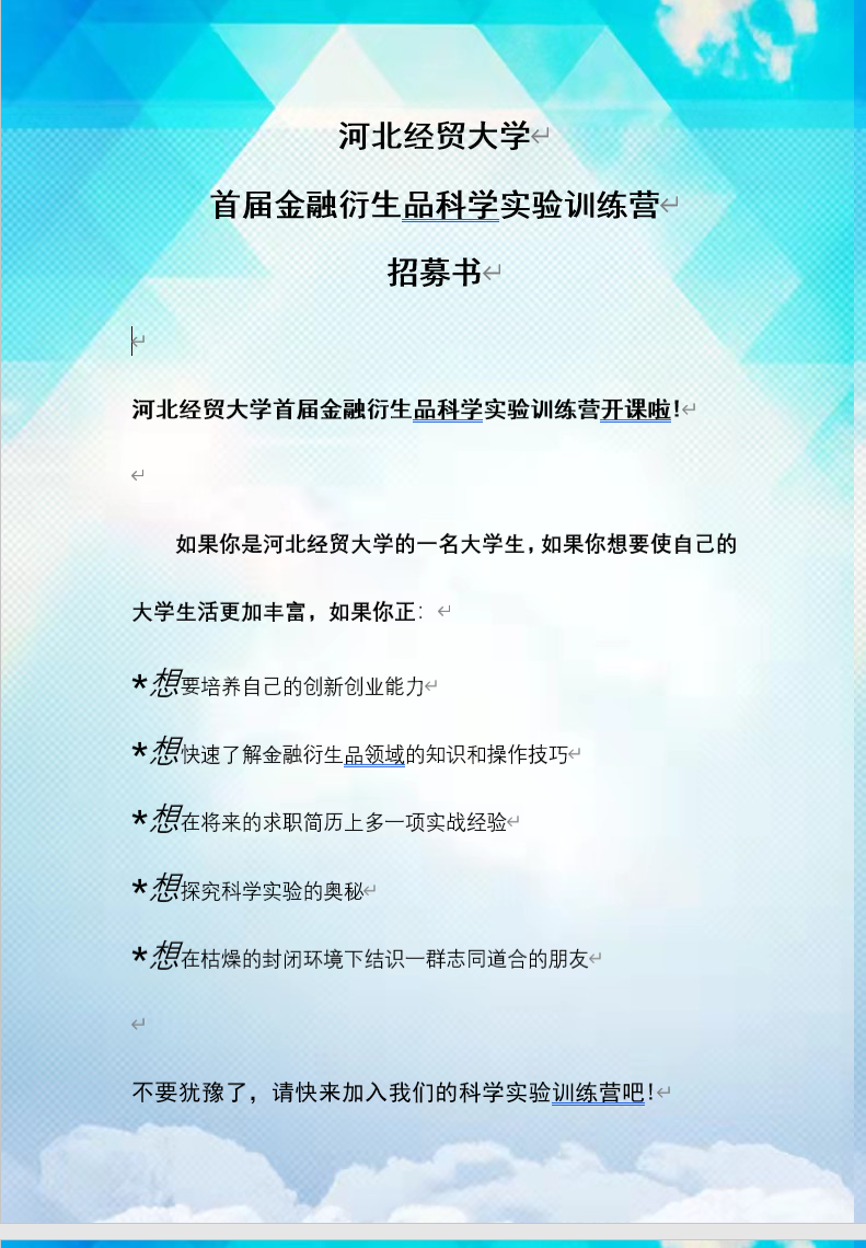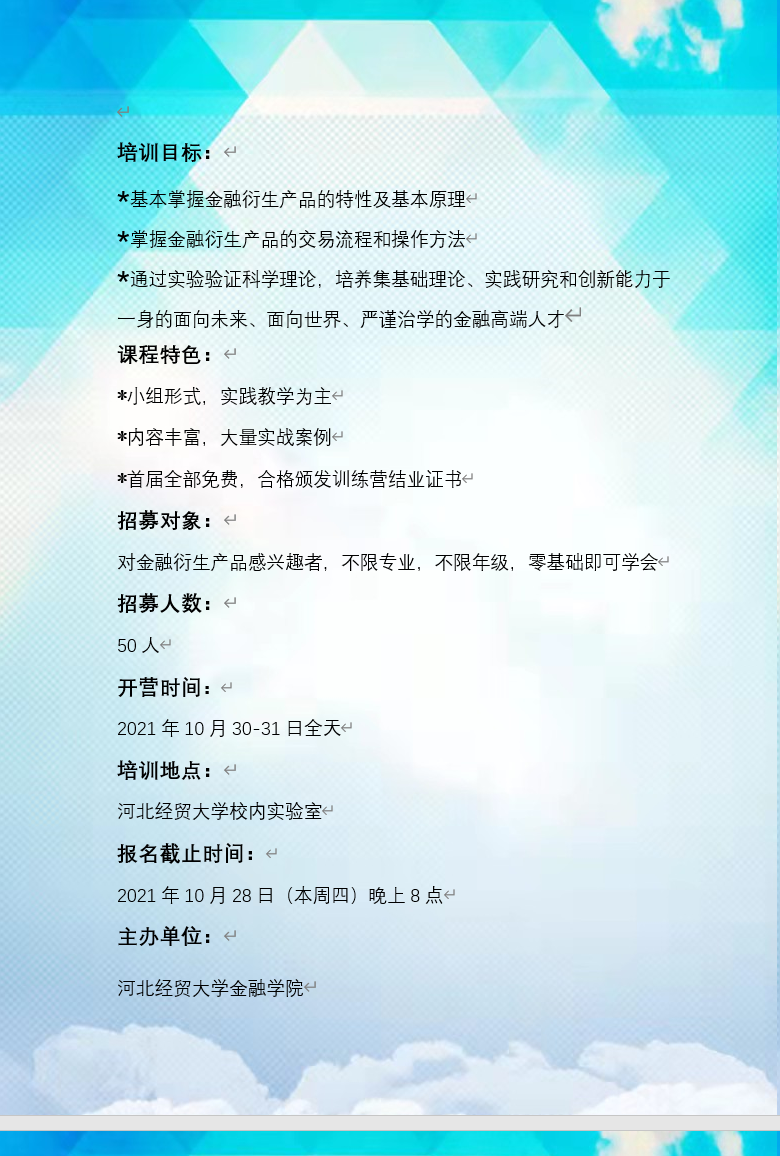 韩国三级片 首届金融衍生品科学实验训练营招募书