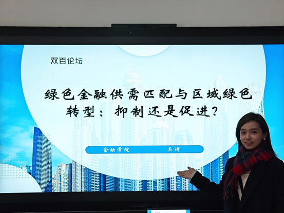吴琦老师做题为《绿色金融供需匹配与区域绿色转型:抑制还是促进?》的主题讲座。