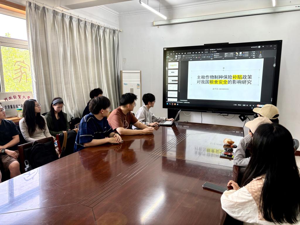 在三办党务会议室举办第五十七期融道论坛研究生沙龙活动。本期论坛由赵子龙同学主讲,分享主题为《主粮作物制种保险补贴政策对我国粮食安全的影响研究》,十余名研究生参加。