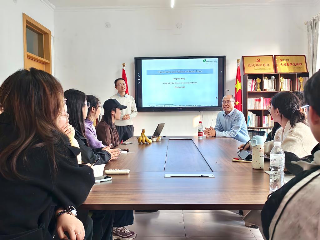 品牌学术活动,持续为研究生搭建高水平的学术交流平台。本次讲座不仅提升了同学们在英文论文写作与发表方面的实战能力,也进一步营造了学院浓厚的科研创新氛围,为后续学术研究与论文发表奠定了坚实基础。