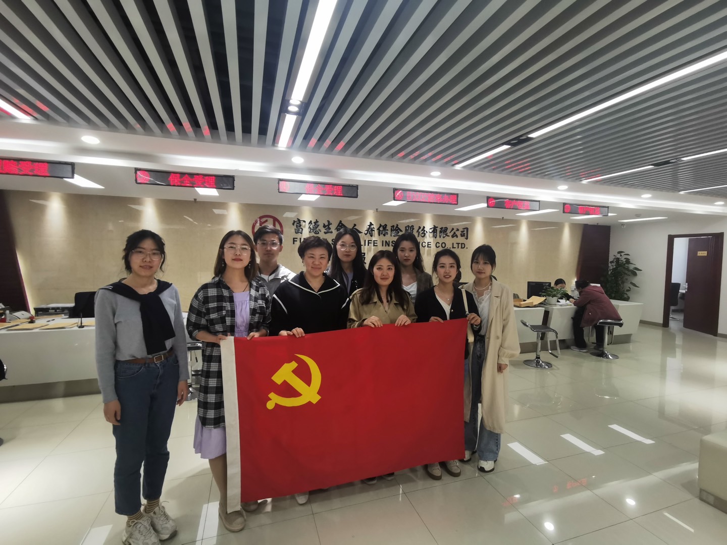 研究生党支部走进富德生命人寿保险股份有限公司河北省分公司,举行了以“知行合一,争做全新保险人”为主题的党日教育活动。8名2020级保险专硕的研究生党员参与,活动由研究生党支部书记董岚老师带队。