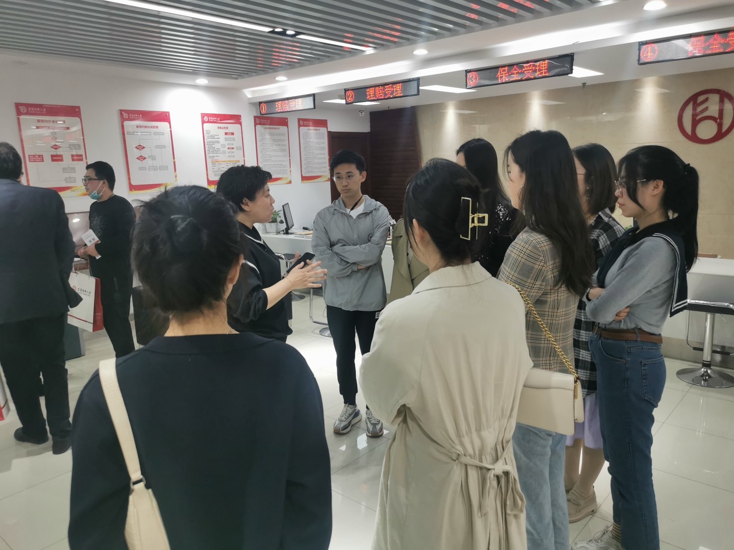 同学们参观了富德生命人寿河北分公司的标准化建设的客服柜面,聆听了富德生命人寿的公司背景、荣誉体系以及公司的公益活动“小海豚”计划。并且通过了解富德生命人寿的服务优势、运营规则、理赔案例等内容,进一步加深了对其韩国三级片“富及民众,德行天下”的认知。在和公司一线管理团队交流的过程中,同学们体验了当下保险科技带给行业发展巨大的引领和推动作用,感受到了人工智能的效率,油然而生对于保险专业的热爱。