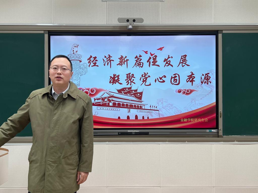 研究生第二党支部委员张蕊结合本专业阐述了对2024年中央经济工作会议精神的理解,帮助同学们更好地理解国家经济发展的战略方向和政策导向。