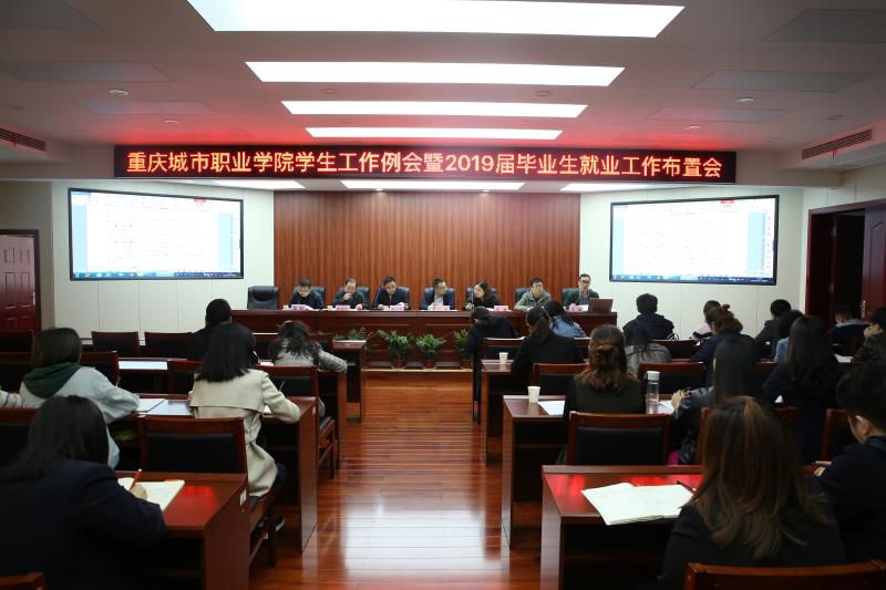 会议学习了《重庆城市职业学院毕业生就业工作管理暂行规定》《重庆城市职业学院毕业生就业招聘双选活动管理暂行办法》《重庆城市职业学院2019届毕业生就业工作实施方案》《重庆城市职业学院2018年双选会实施方案》,并对2019届毕业生就业工作进行了布置。