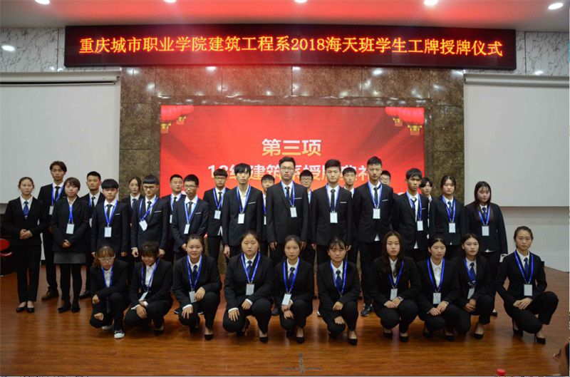 10月18日下午,建筑工程系在学术报告厅举行2018级“海天班”学生工牌授牌仪式。建筑工程系党总支书记何春华、海天时代教育校区负责人贺敬及海天教育全体教师参加仪式。
