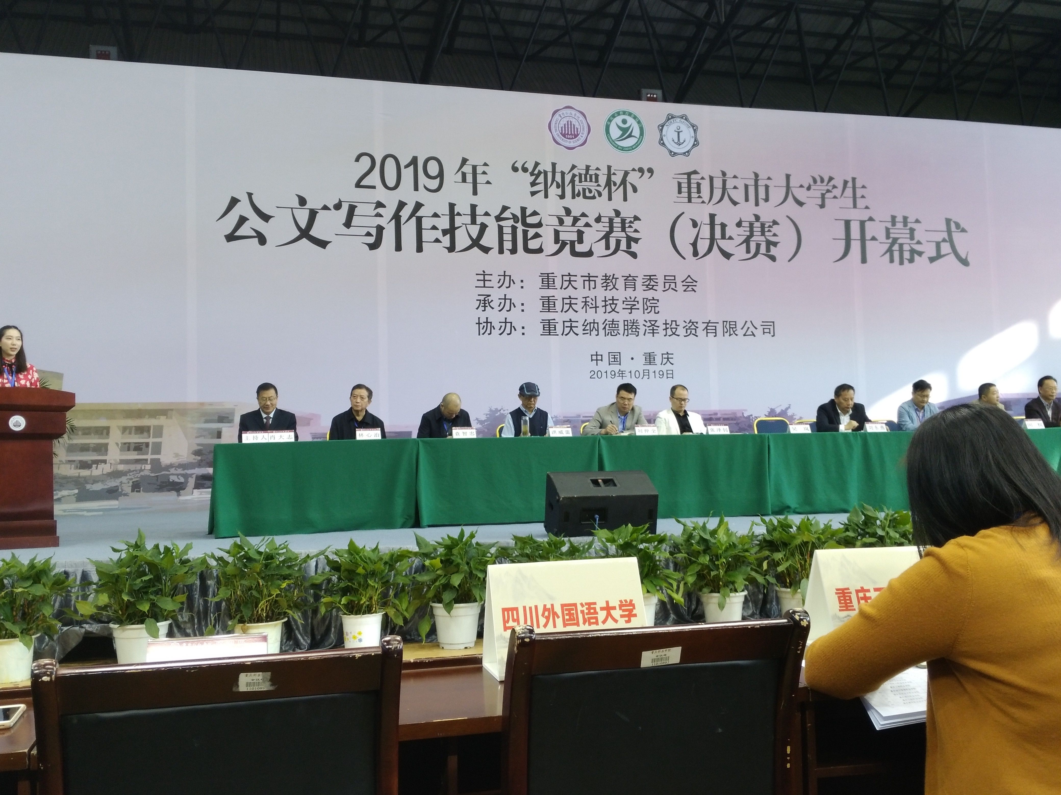 2019年10月19日,由重庆市教育委员会主办、重庆科技学院承办,重庆纳德腾泽投资有限公司协办的“纳德杯”大学生公文写作技能竞赛决赛在重庆科技学院举行,此次大赛共有来自全国71所高校的61支队伍参加中文类决赛。学院旅游管理系共有20名学生参加中文类决赛,获得团队赛二等奖,个人赛获2个一等奖,9个二等奖,5个三等奖。