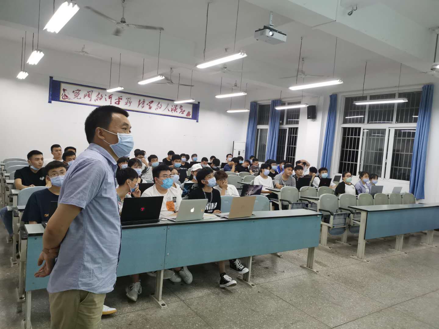 在教室里,刘波同志亲切慰问了上课师生,他勉励同学们只争朝夕,时不我待,把疫情耽误的时间抢回来,要加倍珍惜在校学习的美好时光,努力学习,刻苦奋斗,做现代工匠精神传承人,为国家实体经济的不断提质增效贡献青春力量。