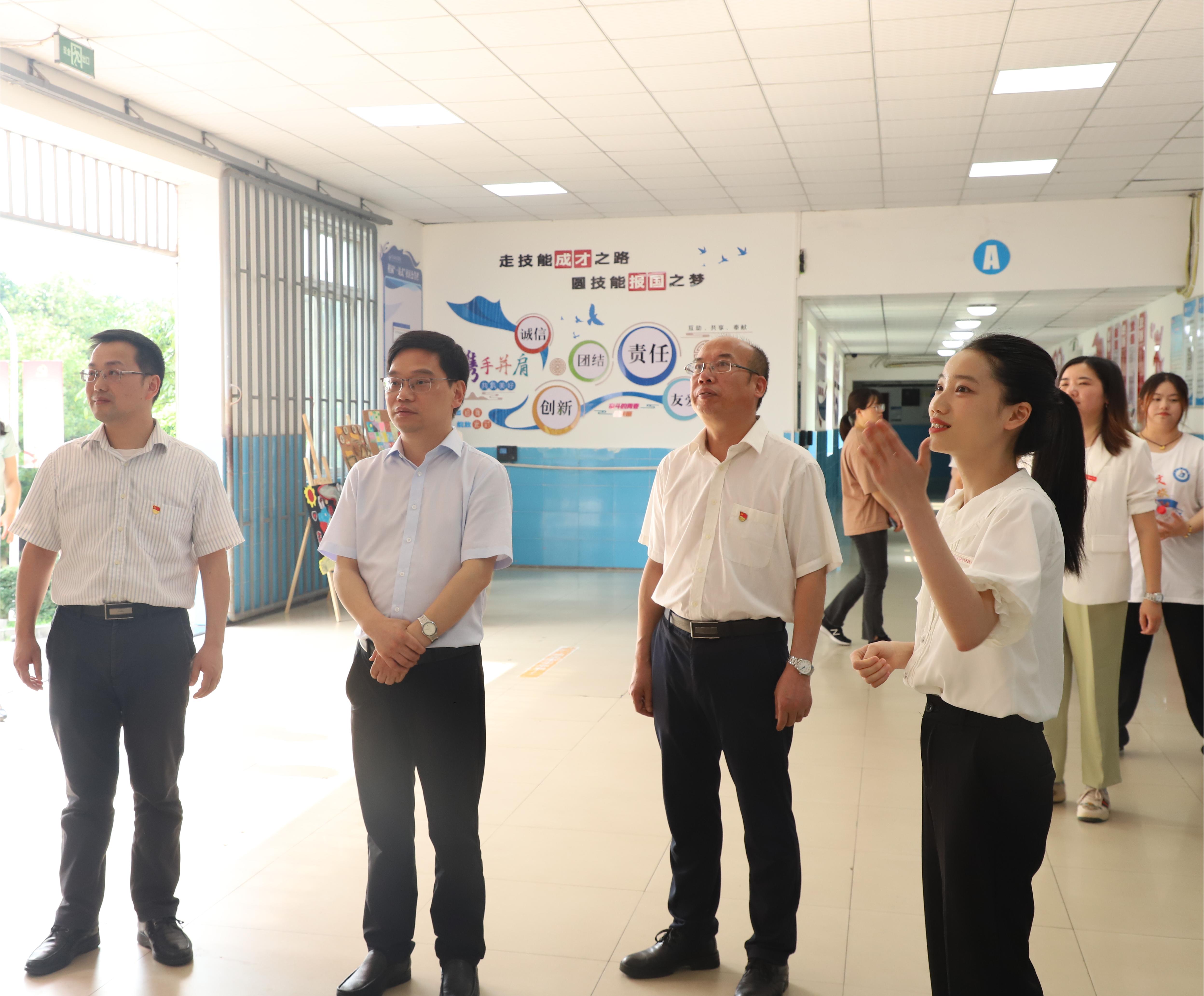 在学校党委书记张绍荣,副校长文斌陪同下,陈劲一行来到桂园学生社区,听取学校“一站式”学生社区综合管理模式试点建设情况介绍,实地查看桂园社区“党史文化长廊”“技能成才长廊”,现场观摩非物质文化遗产——油茶技艺展示。走进学生社区党团服务站,与社区负责人、学生们进行了交流,了解学生社区党组织建设、党团活动等管理服务工作,并就进一步推进学生社区建设工作提出指导意见。
