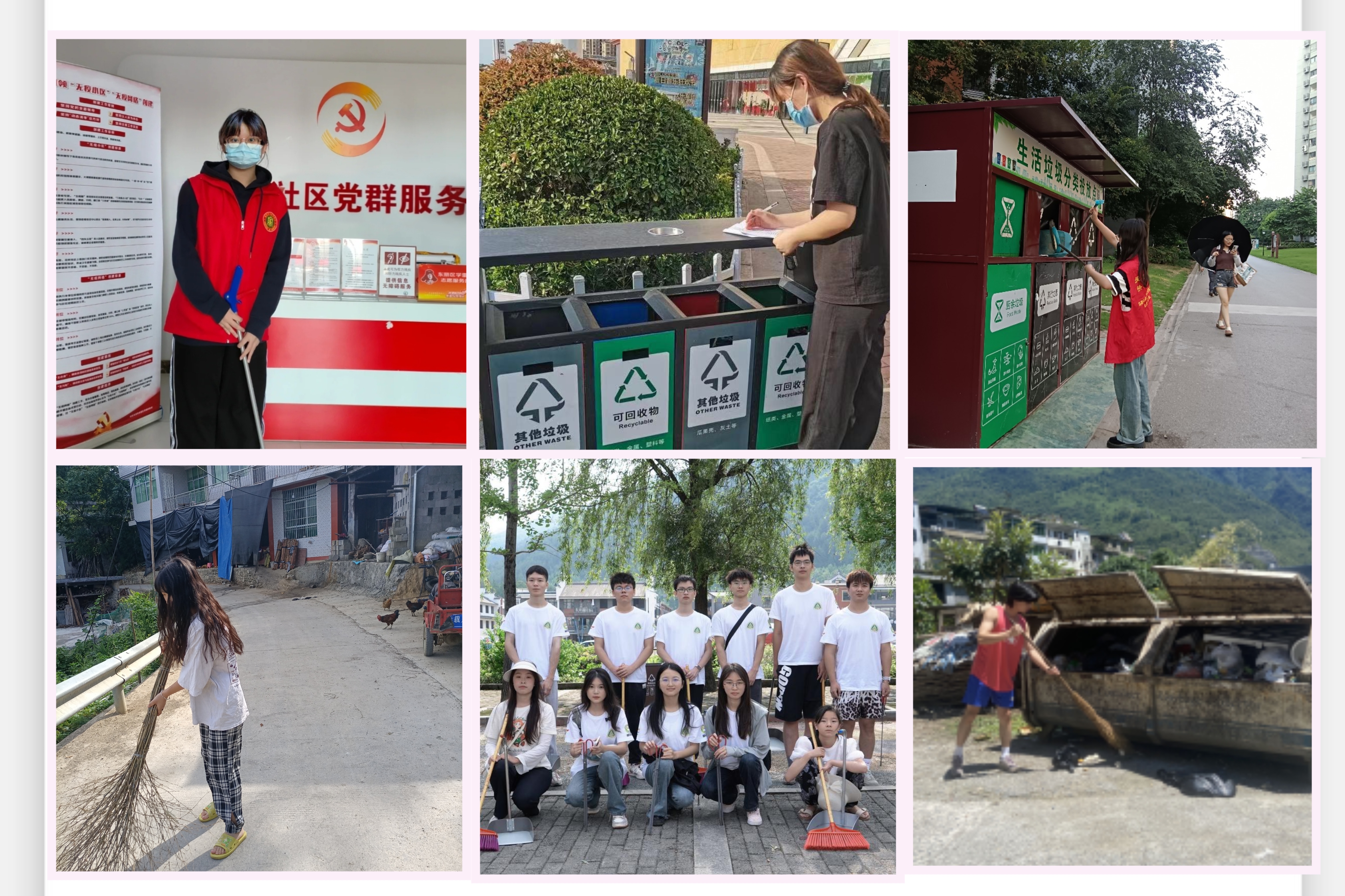 宣讲环保知识,共建低碳社区。在社区及乡村治理实践中,志愿者们承担起垃圾分类,清理街道、公园,宣传环保知识等任务,增强社区居民及村民的环保意识,激发大家关注并参加环境保护,共建共享绿色家园。