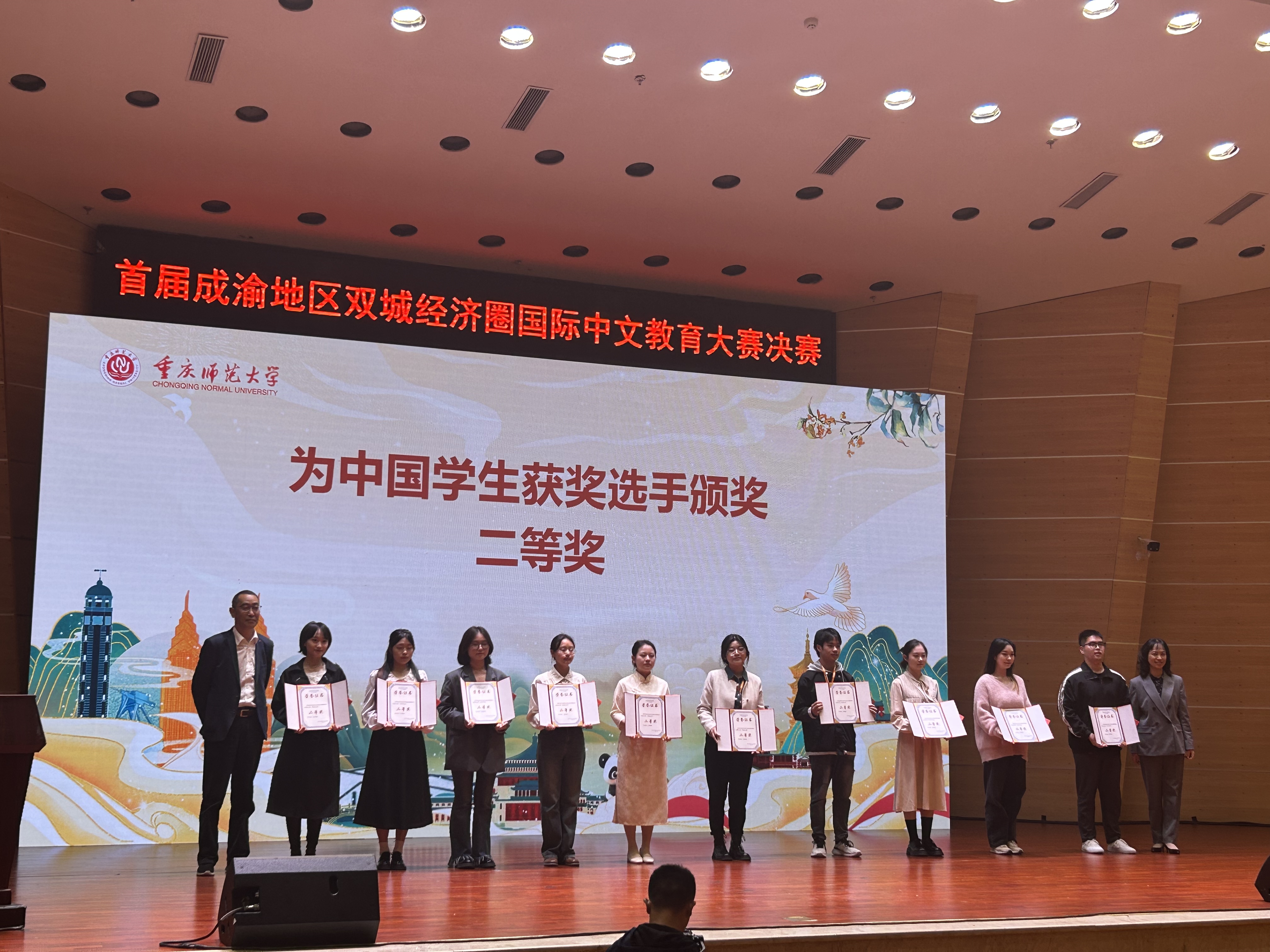 10月18-19日,首届成渝地区双城经济圈国际中文教育大赛决赛在重庆师范大学举行。我校商学院教师杨婷婷、曹维指导的22级电子商务专业学生罗贵川荣获二等奖。