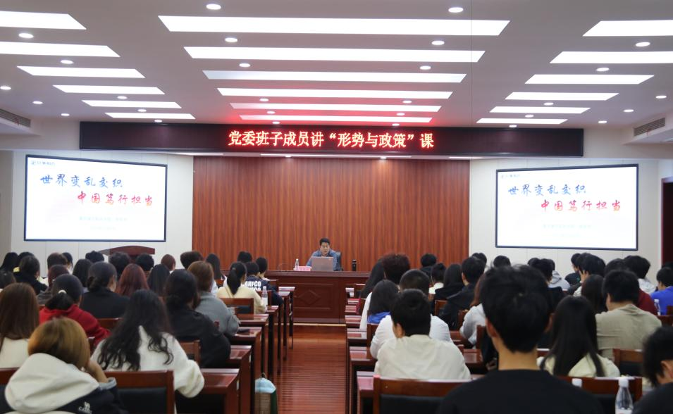 校党委委员、纪委书记、监察专员朱传书以“世界变乱交织 中国笃行担当”为题讲授“形势与政策”课