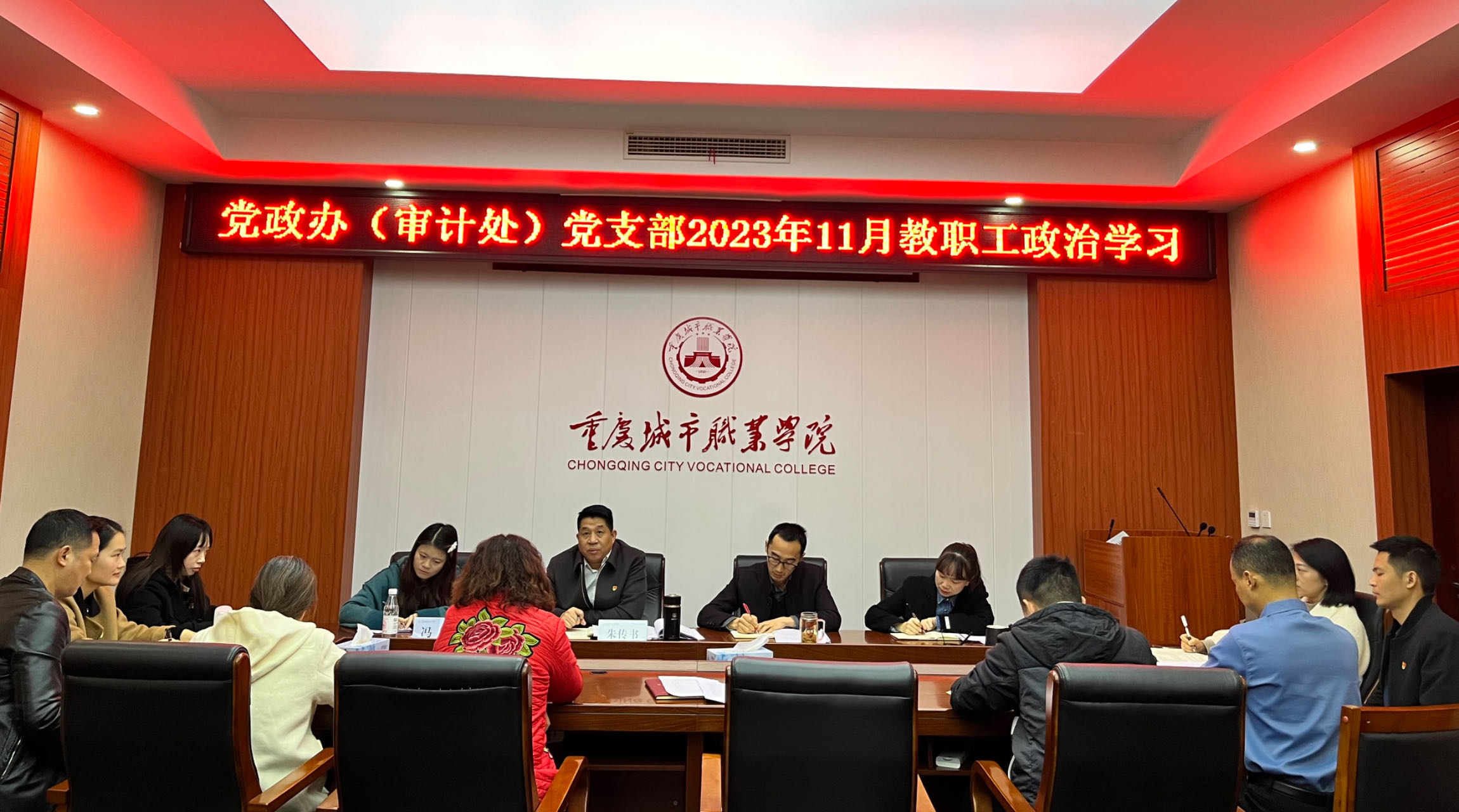 近日,党政办公室(审计处)党支部在博学馆607会议室开展11月教职工政治理论学习。学校党委委员、纪委书记、监察专员朱传书到会巡听旁听并指导工作。会议由支部书记朱三彬主持,党政办(审计处)全体教职工参加会议。